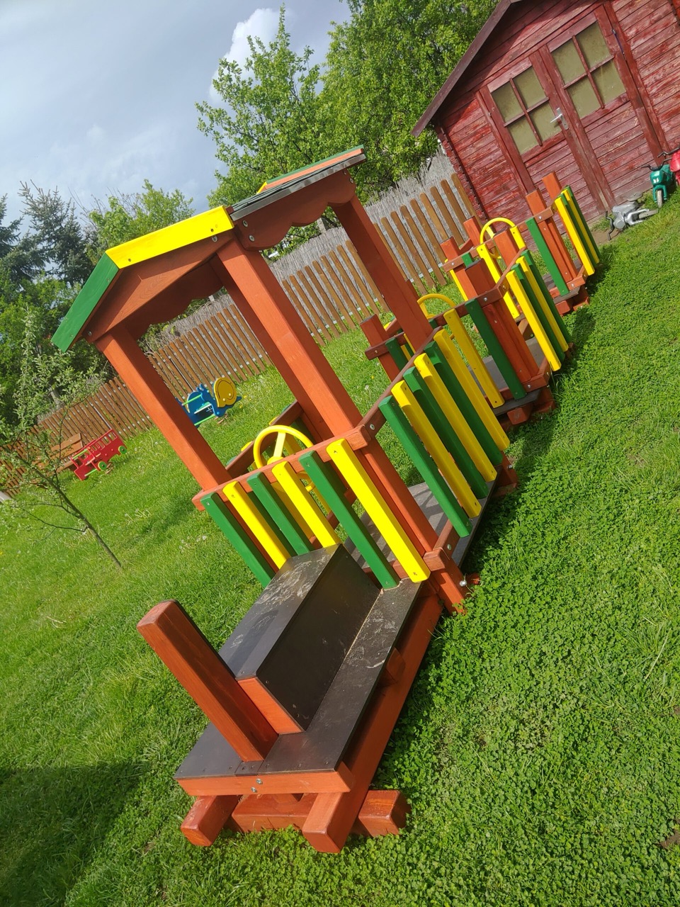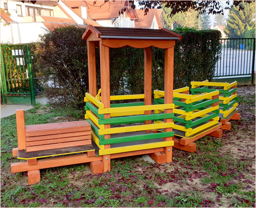 Masszív, időjárásálló tölgyfából készített, mozdony formájú játszótéri tölgyfa játszóház, amelyhez csatolt vagon is tartozik, így a gyerekek biztonságos térben utazást, szerepjátékot és fantáziájukat élvezhetik, közben fejlesztve motorikájukat, képzelőerőjüket és társas játéképességüket. 3–7 éves gyermekek, bölcsődéi és óvodai játszóterek, valamint családi kertek számára ideális, ahol a kaland és a mozgás egyaránt fontos.